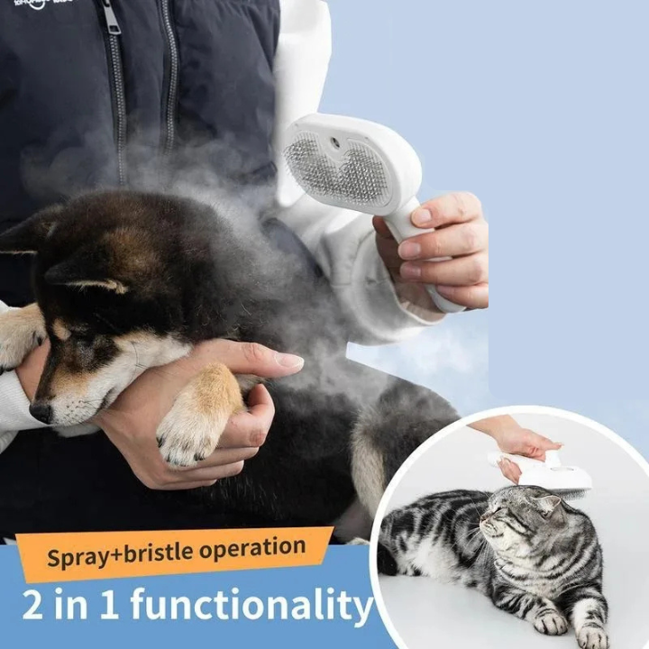 The Steam Spray Hair Removal Brush offers a professional grooming experience with its comfortable grip design and convenient one-press hair release button. Designed for both cats and dogs alike of any fur length, it massages while effectively detangling knots and removing loose hair. This reduces shedding and helps keep your home fur free. Its simple yet very effective design makes grooming a smoother, more efficient process for pet owners seeking expert results.