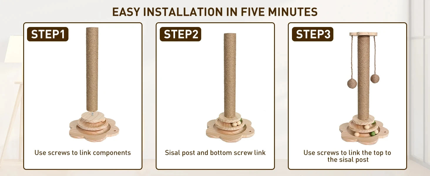 Crafted from solid wood, this sisal scratch tower offers durability that withstands even the most enthusiastic scratchers. Wear and splinter resistant, it ensures your investment withstands years of daily use due to its structural integrity and natural sisal wrapping that provides a long-lasting scratching solution full of appeal and functionality, season after season.