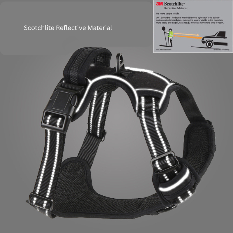 Our reflective and breathable dog harness is a secure and comfortable fit for your furry friend, offering a snug design that gently contours to your pet's body. Made from breathable materials, it ensures optimal airflow to keep your dog cool during walks. The reflective elements on the harness enhance visibility for safety in low-light conditions, making it a reliable choice for daily use.
