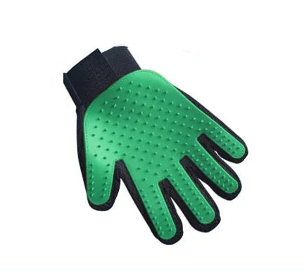 This soft-bristled animal hair removal glove brush gently massages as it brushes out your pet's hair. The velcro adjustable strap fits comfortably and securely on any size hand. Made from high-quality, eco-friendly materials, this glove offers a gentle grooming action without irritating or bothering the skin.